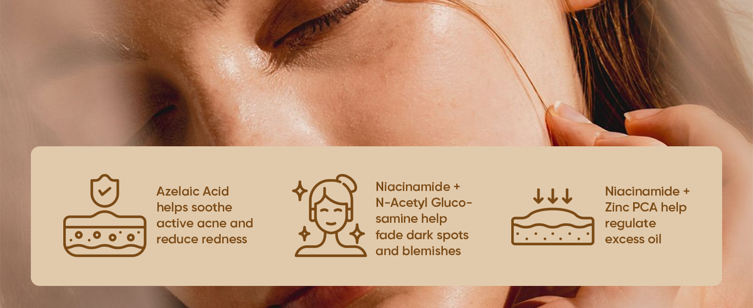 Experience a powerful, clinically tested formula designed to break the acne cycle at its core. This advanced serum combines Fuzast®12% Niacinamide to control excess oil and visibly fade blemishes, with Azelaic Acid to soothe active breakouts, reduce redness, and combat acne-causing bacteria.